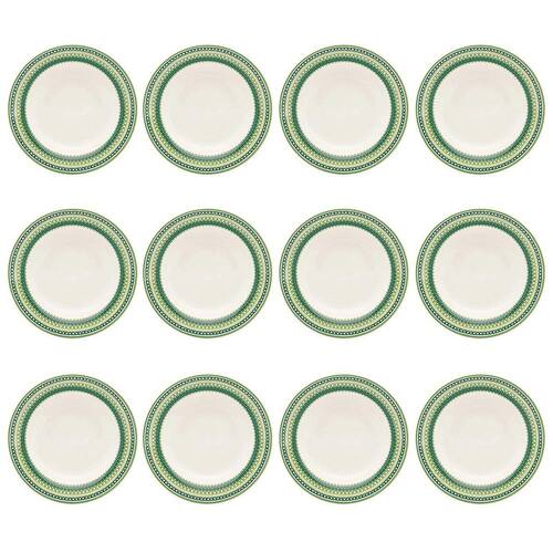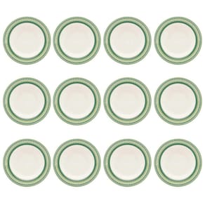 Características do Produto: Fabricante: Oxford Marca: Biona Material do Produto: Cerâmica Cor: Branco e Verde Conteúdo da Embalagem: 12 un Uso: Resistente a micro-ondas e resistente a lava-louças Linha: Campestre Formato: Redondo Diâmetro: 21,5 cm
