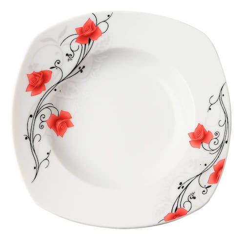 O Prato Rosas segue a nova tendência e traz formato quadrado com as bordas arredondoadas que aposta na autenticidade e no contraste de cores, trazendo à sua mesa mais charme e sofisticação nos momentos de suas refeições. É produzido em porcelana de altíssima qualidade na cor branco com floral vermelho que traz uma sensação de leveza a sua mesa.