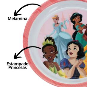 -Diversão na Mesa: Com um prato fundo decorado com as adoráveis Princesas Disney, como Cinderela, Bela, Ariel e muito mais, trazendo um sorriso ao rosto de qualquer criança.