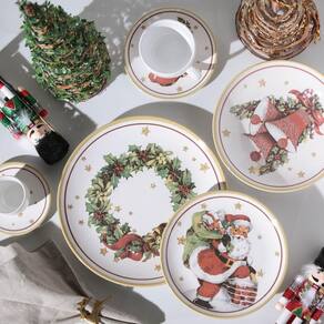 Prato Fundo Santa Claus Porto Brasil 6 Peças O Natal é a data mais comemorada do ano. É tempo de enfeitar, decorar e preparar a mesa de uma forma muito especial. É por isso que a PortoBrasil preparou uma Coleção Especial de Natal, para você viver este momento como um presente, compartilhando-o com a família e os amigos da forma mais gostosa: em torno de uma mesa farta e linda. Coleção: Platinum Linha: Coup Santa Claus Material: Ceramica Feldspática Cor predominante: Branco Dimensões do produto: diametro: 21cm altura: 5cm