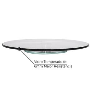 Altura: 5cm Diâmetro: 60cm Base giratória: 5cm Espessura do vidro: 6mm Material: vidro temperado Cor: fumê Conteúdo: