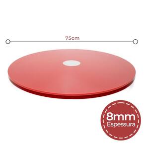Prato Giratório 75Cm De Vidro Temperado 8Mm Cor Vermelho - vidro temperado 8mm 5 à 7x mais resistente do que o vidro comum; - muito mais resistente à variações de temperatura de até 250ºc panelas etc... - base giratório reforçada e blindada oferece giro livre e macio sem trancos; - prato inferior garante a maior estabilidade 'não tomba'; - qualidade high-premium "foi feito para durar"; - suporta em sua base até 100kg; - corte à laser "sem rebarbas", acabamento perfeito c/borda infinita; - vidro temperado é considerado como "vidro de segurança" não estilhaça ; - sucesso absoluto, quem utiliza aprova e recomenda Atenção Nosso maior compromisso é a qualidade e segurança, fique atento à economizar comprando prato giratório pelo menor preço. Com segurança não se brinca, existem pratos no mercado que estão descolando à mesa, isso pode transformar um momento familiar no maior pesadelo. Muitas vezes o barato sai caro. Exija qualidade para sua total segurança. Dica: decorativo e funcional, pode ser utilizado também como centro de mesa. Dica extra: pode ser utilizado para exposição de produtos em lojas, é ótimo para confeitar bolos. Cuidados: Utilize detergente neutro e enxágue com água em abundância. Para secar utilize pano seco e macio. Utilize esponja macia e não abrasiva. Características: Altura: 2cm Diâmetro: 75cm Espessura do vidro: 8mm Cor: vermelho Material: vidro e rolamento de alumínio Conteúdo: 1 x prato giratório vermelho 75cm
