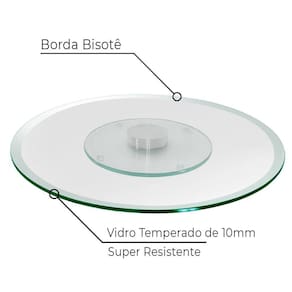 Prato Giratório Bisotado Com Base Inox Luxo 90Cm X 10M Prato giratório c/base de inox 304 é um produto premium para exigentes, ideal para quem mora na praia "regiões litorâneas que enfrentam maresia. Descrição: Por que comprar prato giratório com base de inox 12 vantagens extraordinárias do prato giratório com base de inox: - inox 304 alta durabilidade, maior resistência a corrosão e oxidação causada por maresia não enferruja; - acabamento perfeito com corte à laser e lapidação especial bisotê vidro chanfrado no ângulo ideal; - vidro temperado 5 à 7x mais resistentes do que vidro comum. - possui base de inox 304 e espessura do vidro de 10mm que oferece muito mais segurança; - qualidade high premium, foi feito para durar; - o único que suporta em sua base até 150 kg aprox; - indispensável para o dia-a-dia e ideal para ocasiões e datas especiais; - muito utilizado e indicado por especialistas e decoradores; - é uma forma moderna/sofisticada de decorar sua sala de jantar/sala ou cozinha e acrescentar design de alto padrão; - sucesso absoluto em milhares de lares, fácil limpeza e quem utiliza aprovada e recomenda; - modelo super versátil porque combina com diversos modelos de base; - atendemos os mais altos índices de exigência de segurança e qualidade; Por que vidro é tão requisitado por especialistas e decoradores Porque é um material super versátil que combina facilmente com diversas decorações de ambientes; Vidro é único, possui beleza incomparável, 100% sustentável e de fácil limpeza; Não importa o tamanho do seu ambiente, vidro vai harmonizar e fazer a diferença. Características: Altura: 2,5cm Diâmetro: 90cm Espessura do vidro: 10mm Cor: incolor Material: vidro temperado Base giratória inox 304 Conteúdo: 1 x unidade de prato giratório de mesa