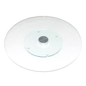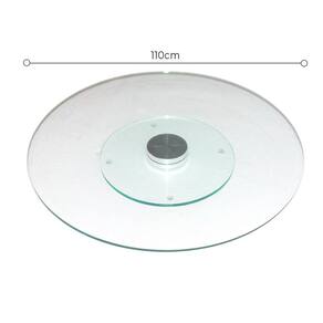 Altura: 2cm Diâmetro: 110cm Espessura do vidro: 8mm Material: vidro e rolamento de alumínio