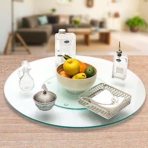 Vidro temperado de 8mm, oferece resistência e maior segurança; O único que suporta em sua base até 100 kg aprox; Qualidade high premium, foi feito para durar; Possui base reforçada que oferece muito mais estabilidade, giro livre e macio; Indispensável para o dia-a-dia e ideal para ocasiões e datas especiais; Sucesso em milhares de lares, quem utiliza aprova e recomenda; Desenvolvido por especialistas é o melhor prato giratório do mercado.