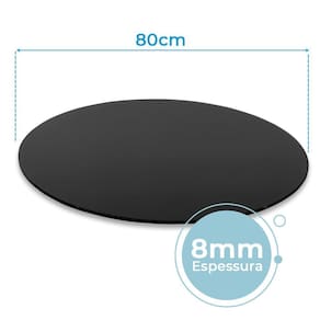 Altura: 5cm Diâmetro: 80cm Espessura do vidro: 8mm Cor: preto Material: vidro temperado