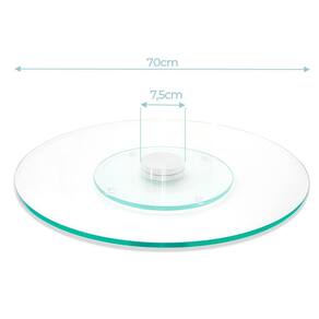 Características: Altura: 5cm Diâmetro: 70cm Base Giratória: 7,5cm Espessura Do Vidro: 8mm Cor: Incolor Material: Vidro Temperado Base Giratória Inox 304