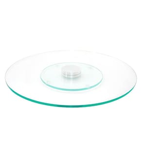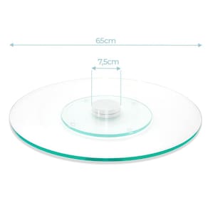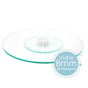 Características: Altura: 5cm Diâmetro: 65cm Base giratória: 5cm Espessura do vidro: 8mm Cor: incolor Material: vidro temperado Base giratória inox 304