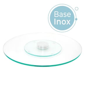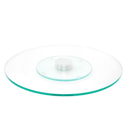 Prato Giratório Vidro Temperado Com Base Inox Luxo 65CmX8Mm