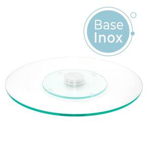 Características: - Altura: 5cm - Diâmetro: 90cm - Base giratória: 10cm - Espessura do vidro: 8mm - Cor: incolor - Material: vidro temperado - Base giratória inox 304