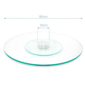 Características: - Altura: 5cm - Diâmetro: 90cm - Base giratória: 10cm - Espessura do vidro: 8mm - Cor: incolor - Material: vidro temperado - Base giratória inox 304
