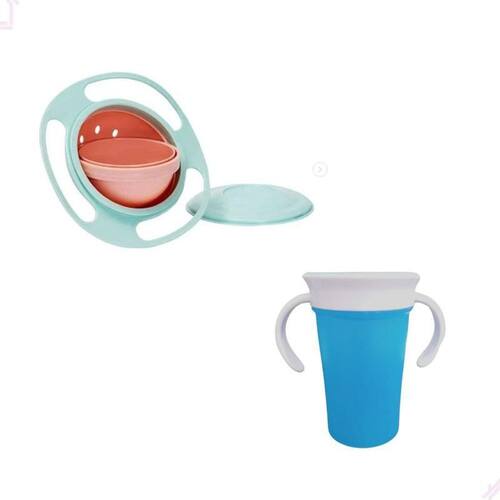 Prato Mágico Infantil Giratório E Copo Antivazamento - Azul
