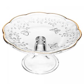 Prato para Bolo 27 cm de Cristal com Pé New Butterfly com Fio de Ouro Lyor