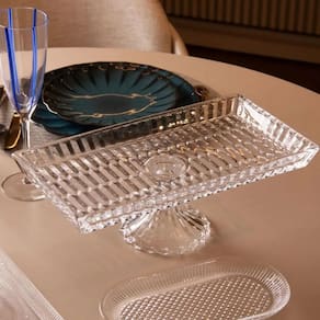 Prato para Bolo Geneva Cristal Retangular com pé 34,5x18,5x12cm Wolff