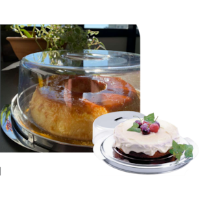 Em um lado do prato, você pode servir bolos e tortas preferida, invertendo o prato, você terá altura suficiente para servir bolo vulcão ou pudim sem derramar a calda. Devido ao formato do prato e a sua borda alta, a cúpula/tampa não encosta na calda do pudim ou na cobertura do bolo vulcão.