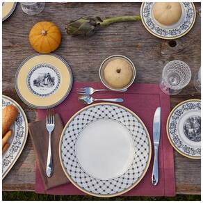 O prato Audun Promenade é uma excelente escolha para quem deseja adicionar um toque artístico à mesa. Com um design elegante e decoração floral em cobre cinza, ele é perfeito para servir pequenos pratos durante o café da manhã, brunch ou hora do café. Sua borda ligeiramente elevada garante um serviço seguro e limpo.