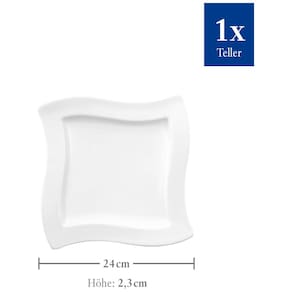 Este conjunto inclui 1 prato de café da manhã quadrado Villeroy Boch NewWave, com 24 x 24 cm de tamanho e na cor branca. Aproveite a nova onda contemporânea com este elegante prato de café da manhã!