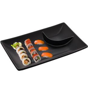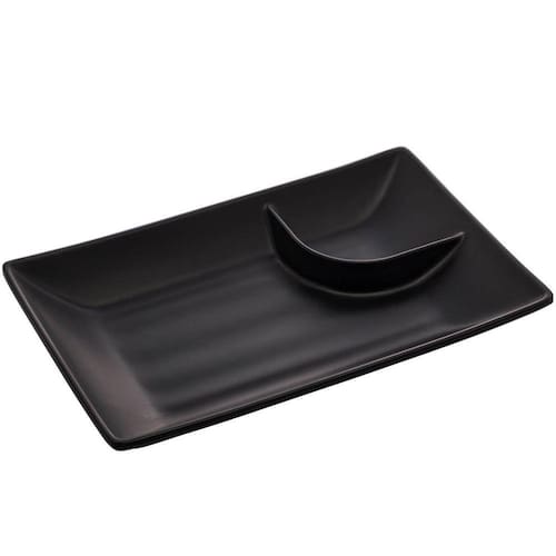 Prato para Sushi com Molheira Melamina Preto 19x12,5cm Lyor Tóquio Japonês Retangular.