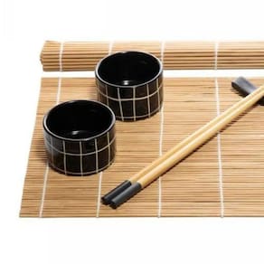 Conjunto 8 Peças para Sushi de Bambu Naka - Wolff Em sua cozinha, cada momento se transforma em uma celebração da culinária, onde sabores se encontram e memórias são criadas. Cada detalhe é cuidadosamente planejado para oferecer uma experiência gastronômica única. Descubra por que o Conjunto 8 Peças para Sushi Naka da Wolff é indispensável para suas aventuras culinárias Elegância Natural do Bambu Feito com bambu de qualidade superior, este conjunto irradia elegância e autenticidade. Sua textura natural e design refinado adicionam um toque de sofisticação à sua mesa de jantar. Versatilidade e Praticidade Com o conjunto de 8 peças, você tem tudo o que precisa para preparar e servir sushi com facilidade e estilo. Desde a esteira de bambu para enrolar até os hashis e tigelas, cada item é projetado para tornar sua experiência na cozinha mais agradável. Durabilidade e Sustentabilidade O bambu é conhecido por sua resistência e durabilidade, tornando este conjunto uma escolha sustentável e ecologicamente correta. Além disso, sua beleza natural adiciona um toque de serenidade à sua mesa. Surpreenda seus Convidados Encante seus convidados com uma apresentação de sushi impecável. Este conjunto não apenas facilita a preparação, mas também eleva a experiência gastronômica, transformando cada refeição em uma celebração. Ao escolher o Conjunto 8 Peças para Sushi de Bambu Naka da Wolff, você investe em qualidade, tradição e estilo para suas experiências culinárias japonesas. WOLFF. A melhor experiência em receber, servir e decorar Contém: 2 Pares de Hashi 2 Suportes para Hashi 2 Esteiras 2 Porta Molhos Medidas Produto: Altura 5,50cm x Largura 20,50cm x Comprimento 27,50cm Peso: 0,32Kg Material: Bambu Lavar com detergente neutro, esponja macia e secar imediatamente.