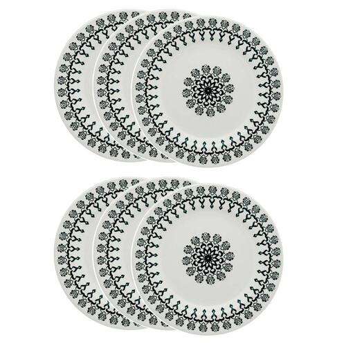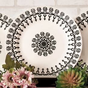 Prato Raso de Cerâmica Estampa Donna Folk 24cm 6 Unidades - Biona 061404