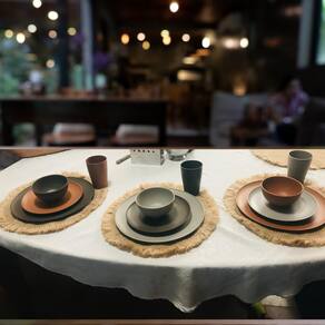 O prato Raso em Fibra de Pinho tem um design rústico e natural, com acabamento em texturas suaves inspiradas na natureza, como pinhas e troncos de árvores. Ele é ideal para você combinar com outros elementos decorativos que remetam à natureza e à vida ao ar livre, como plantas, pedras, peças de barro, cerâmica e bambú. É recomendado para refeições em geral, como almoço e jantar, por ter uma borda ligeiramente elevada ajuda a evitar derramamentos e facilita o manuseio dos alimentos.