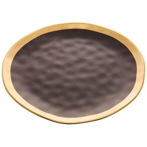Prato Raso de Porcelana Preto e Dourado Dubai 25CM - WOLFF A linha dubai da wolff é composta por peças contemporâneas marcadas por beleza e modernidade. O prato raso é uma combinação glamourosa de porcelana preta com borda dourada em uma circunferência irregular que proporciona muitas maneiras de fascinar os convidados na arte de receber. A wolff é um símbolo de tradição e luxo, comercializando produtos elegantes e de alta qualidade. Ean: 7895730180640