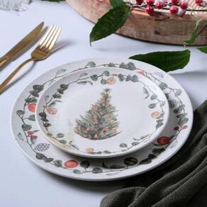 Elegância Duradoura: Com design coup e estampa de guirlanda que exibe símbolos natalinos, este prato mescla o clássico e o contemporâneo, oferecendo um toque refinado à sua mesa.