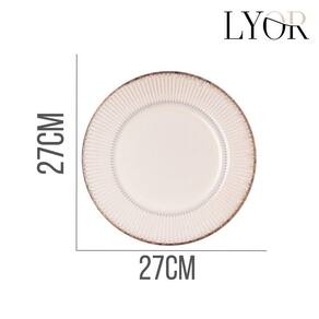 O prato raso em cerâmica Linear Branco da Lyor possui dimensões de 27x27x2,5cm. Sua cor branca e design linear tornam a peça adequada para diferentes tipos de composições de mesa, desde as mais informais até as que exigem maior requinte. A cerâmica é um material resistente e durável, o que contribui para a longevidade do produto e facilita a limpeza. Pode ser utilizado para servir pratos principais, entradas ou acompanhamentos.