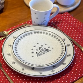 • Informações Adicionais: A decoração Vilarejo de Natal possui efeito acetinado; Utilizar apenas sabão ou detergente e esponja macia; Enxaguar bem as peças removendo totalmente os resíduos dos produtos de limpeza; Evite deixar as peças de molho em água por muito tempo; Secar as peças com pano seco; Resistente a micro-ondas e lava-louças;