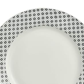 O Prato Raso Luana da Hauskraft vai trazer à sua mesa mais charme e sofisticação nos momentos de suas refeições. Suas peças são confeccionadas em porcelana e trabalhadas no formato redondo o que as torna ainda mais especiais, por serem peças de altíssima qualidade e durabilidade. Este conjunto de porcelana tem de tudo para melhorar suas reuniões, comemorações e cerimônias. A peça conta com desenhos geométricos em tons de cinza em suas bordas para agregar na decoração de sua mesa posta!