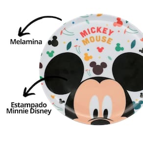 -01 unidade Prato Refeição Infantil Raso Melamina Mickey - Tuut
