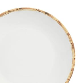 O Prato Raso Nodo com 27 cm de diâmetro é produzido em cerâmica com fundo branco e as bordas possuem pintura feita a mão imitando bambu. Apresenta uma estética minimalista, que permite ser combinado com diferentes acessórios e utensílios da mesa-posta. O prato raso serve a maioria das refeições e é o mais utilizado no dia a dia. Em um jantar mais elegante, o prato raso serve a refeição principal.