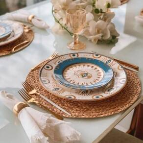 Design Sofisticado: O motivo Olho Grego proporciona um visual único e sofisticado, adicionando um toque especial e simbólico à sua mesa.