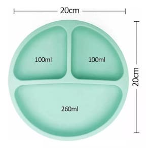 - Livre de BPA. Produto 100% atóxico. - Possui divisórias para separar os alimentos diferentes sem misturar, ajudando o bebê a reconhecer diversos sabores e texturas. - Confeccionado em 100% silicone, é super prático e higiênico. - Medidas aproximadas: 20 x 3 xP cm; - Pode ir à lava-louças e micro-ondas. - Possui ventosa para fixação em diversas superfícies.