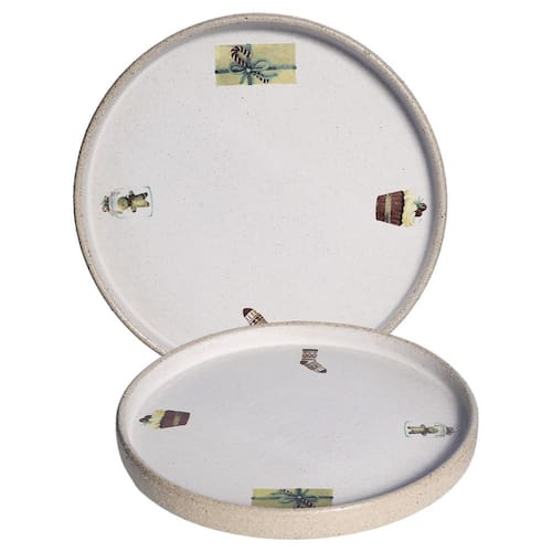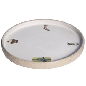 Acabamento rústico, com esmalte fosco acetinado off-white e estampa colorida. Peça vendida avulsa. Impermeável. Cerâmica artesanal de alta temperatura, mais resistente, sujeita a sutis variações de tonalidade e tamanho, podendo conter pintas no esmalte devido à queima e rusticidade da matéria-prima natural. Cuidados com a peça: