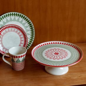 Conteúdo da embalagem 1 Prato Sobremesa 20 cm (diâmetro). Uso Resistente a micro-ondas, Resistente a lava-louças Cor Verde, Vermelho Material Cerâmica Conjunto ou avulso Avulso Linha/Decoração Malabarismo Natalino Tipo da embalagem Papelão pardo Formato Redondo