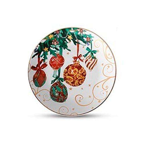 01 Prato Sobremesa Cerâmica Pingentes Christmas Day 20cm