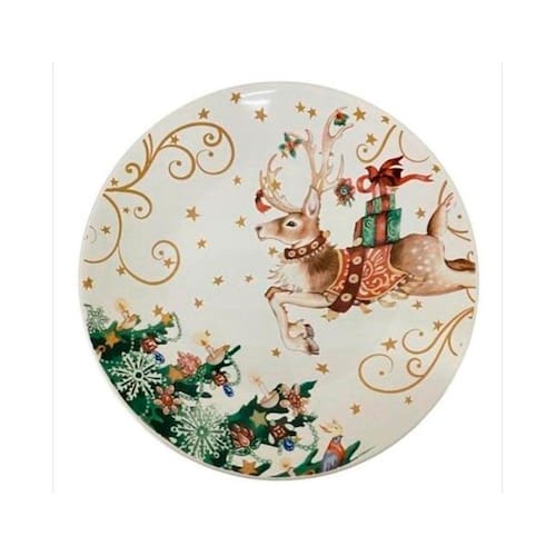 01 Prato Sobremesa Cerâmica Rena Christmas Day 20cm