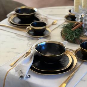 Prato Sobremesa Em Porcelana Dubai 21cm Wolff Preto e Dourado -