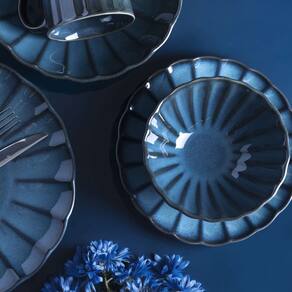 Prato Sobremesa Scallop de Cerâmica Azul 21cm - Wolff