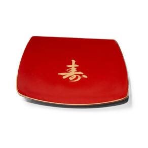 Prato com acabamento vermelho quadrado de excelente qualidade, alto brilho e pintura do ideograma em dourado que representa felicidade. Peça indispensável para amantes da culinária oriental, com cores fortes inspiradoras nas tradicionais decorações japonesas. Perfeita para apreciar a culinária japonesa entre amigos e familiares de forma tradicional. Ideal para servir sushis, sashimis, niguiris e temakis de forma tradicional no uso doméstico ou nos restaurantes. - Facilita e dar mais estilo às suas refeições orientais. Cuidados: - Lavar com água morna e sabão neutro utilizando esponja macia, seguido de pano seco. - Não utilizar produtos químicos ou abrasivos na limpeza. - Não vai a lava-louças.