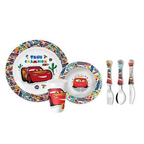 Kit de refeiçao infantil. A hora do almoço virou uma divertida brincadeira para trazer sorrisos e alegria a mesa. O conjunto infantil é perfeito para alimentaçao de bebes e crianças. Produzido com material duravel, garantindo durabilidade e segurança. É mais resistente a quedas e batidas. Ideal para levar na mochila, bolsa ou viagem. Os talheres da linha Kids são produtos que estimulam a fase da descoberta dos alimentos. E acompanham de forma segura cada etapa de exploraçao e aprendizado da criança, ate a fase da pre-adolescencia onde estao atentos a referencias de desenhos animados. Os talheres possui cabo de polipropileno e lamina de aço inoxidavel, pode ser lavado na lava louças e livre de Bisfenol A (BPA Free). Contem: 1 Prato Raso Medidas: 21,1 x 21,1 x 1,8 cm 1 Tigela Bowl Medidas: 16,2 x 16,2 x 4,5 cm 1 Copo de 300 ml Medidas: 10 x 8 cm Material: Melamina 1 Faca Infantil 1 Garfo Infantil 1 Colher Infantil Material: Aço inoxidavel e Polipropileno Indicado para crianças de 2 a 8 anos Marca: CASACHA