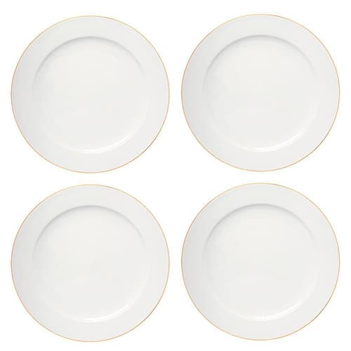 Jogo Prato Raso em Porcelana Branco Borda Dourada 4 peças Royal 27cm - Hauskraft