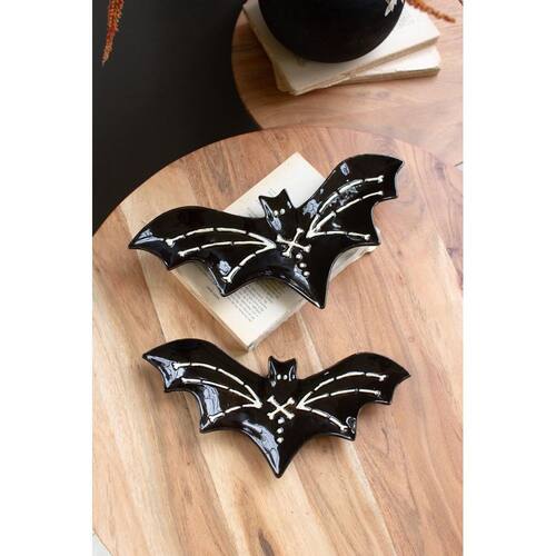 Pratos de servir KALALOU Nesting Ceramic Bat, conjunto de 2, acessórios de cozinha, pretos, CDV2322