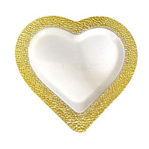 - Produto: Pratos Coração Borda Dourada Plástico Rígido Festa Natal