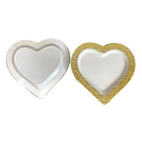 Os Pratos Formato Coração Luxo Dourado Plástico Rigido são a escolha perfeita para tornar suas festas de Natal e Réveillon ainda mais elegantes. Com um design sofisticado, estes pratos descartáveis de luxo possuem borda vazada dourada, proporcionando um toque especial à sua mesa.