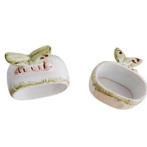 Portaguardanapos com 6 unidades, feito em cerâmica em Faiança, pintados à mão, artesanal. Com uma borboleta deitada e anel branco.
