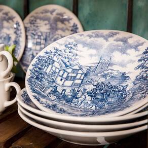 Os pratos fundos Cena Inglesa da Biona fazem uma viagem ao passado. Paisagens históricas retratadas em tons de azul compõem uma louça tradicional e clássica, perfeita para todas as ocasiões! O prato fundo da coleção é perfeito para servir sopas e cremes.
