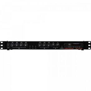 O Pré Gongo PGH3000BT Ambience é um Pré Amplificador mais robusto, ideal para modernizar sistemas de som em ambientes para chamadas em shoppings, aeroportos, hospitais entre outros projetos mais exigentes. Ele conta com uma entrada USB na parte frontal, facilitando a execução de músicas via pen drive, conexões para microfones, extensão da chave do gongo e saída de sinal com função de mixagem mudando as saídas de som.Entradas:USB (frontal); Entrada para cartão SD (frontal); Conexão para microfones (balanceada); Conexão para microfones (não balanceada); 3 Entradas auxiliares (RCA); Conexão para extensão da chave do gongo; Saídas: SAÍDA MASTER (saída de sinal que mixa o sinal selecionado pela chave seletora, microfones e gongo, já processado); SAÍDA MIC./GONGO OUT (saída de sinal do MIC XLR, processado e mixado com o sinal de GONGO); SAÍDA DE MÚSICA (saída de sinal pré-selecionada pela chave seletora, já processada) Dimensões:AxLxP: 44,45x482,60x158mm THD: