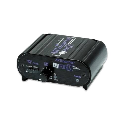 Art – Pré-amplificador para toca-discos Phono DJPREII Pro Audio - Entrada do tipo RCA R/L - Saída do tipo RCA R/L - Terminal de terra - Potência: 12V CC (adaptador incluído)